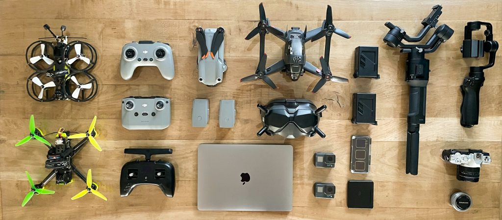 1 drone Cinewhoop: conçu pour la prise de vues cinématographiques. Il est généralement plus petit et plus léger que les drones de prise de vues traditionnels. Utiliser dans des espaces confinés ou difficiles d’accès. Les cinewhoops sont équipés de caméras haute résolution et de stabilisateurs de caméra qui permettent de capturer des images et des vidéos fluides et de qualité cinématographique.
